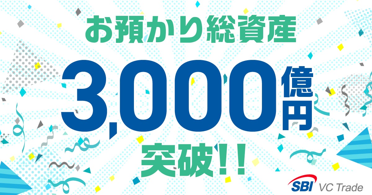 SBIホールディングス株式会社(本社:東京都港区、代表取締役会長兼社長:北尾 吉孝)の連結子会社で暗号資産交換業を営むSBI VCトレード株式会社(本社:東京都港区、代表取締役社長:近藤 智彦、以下「当社」)は、2024年12月2日時点でお客さまからのお預かり総資産が3,000億円を突破したことをお知らせします。