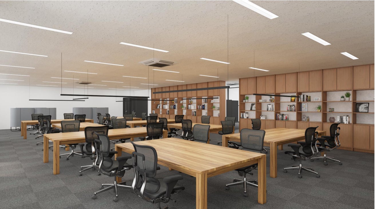 新オフィスは、社員がより創造的に働けるよう、木目調のデザインと、入り口から見渡せる、ガラス張りの開放的な空間が特徴になっております。