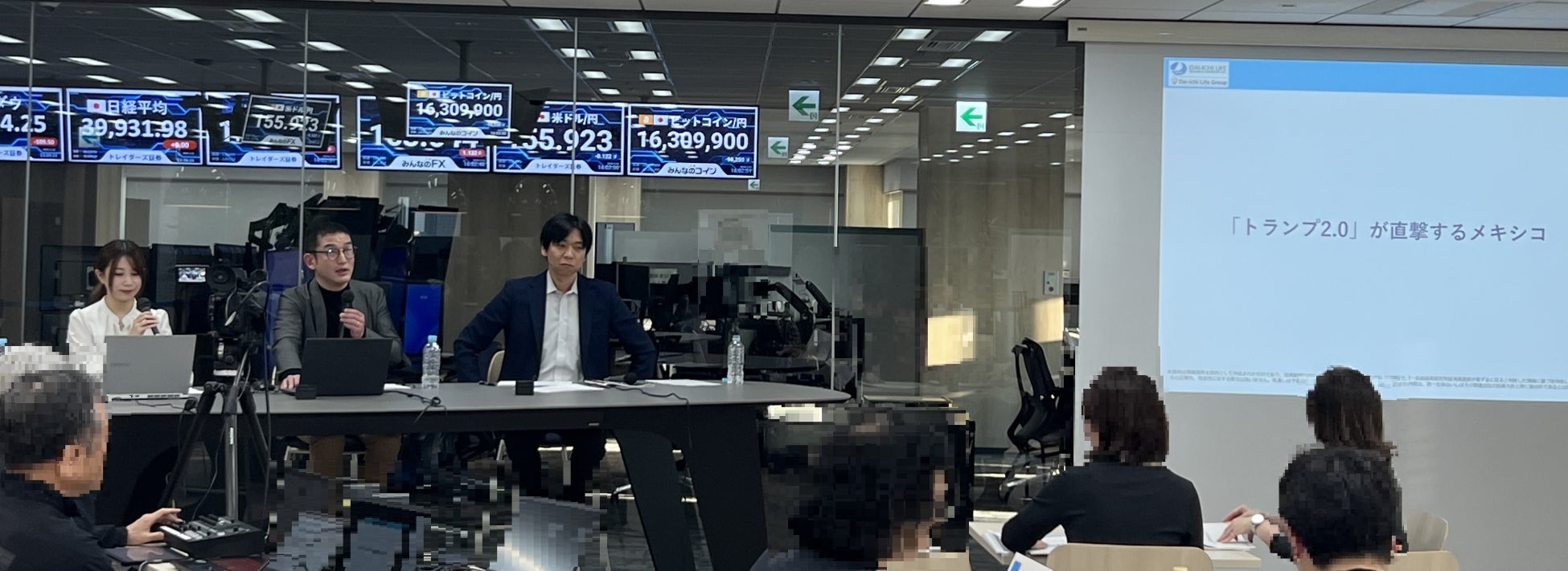 第三部では、『みんなのFXラジオ』にレギュラー出演いただいている、第一生命経済研究所 主席エコノミストの西濱徹氏にご登壇いただき、「「トランプ2.0」と対峙する新興国経済」というテーマにて、米トランプ大統領就任によって新興国がどのような影響を受けるのか、そして各国展望について詳しく解説いただきました。特に情報が限られるトルコやメキシコの展望に対してお客様からは大変高いご評価をいただきました。