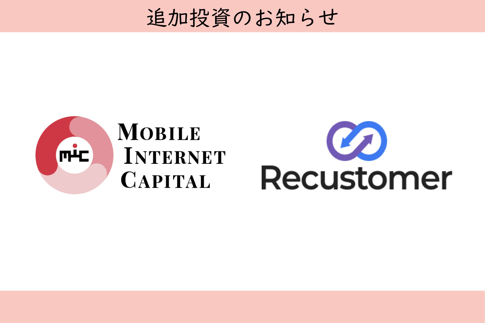 モバイル・インターネットキャピタル株式会社(代表取締役社長:元木新、本社:東京都千代田区、以下MIC)は、購入後体験プラットフォーム「Recustomer(リカスタマー)」を運営するRecustomer株式会社(本社:東京都千代田区、代表取締役:柴田 康弘、辻野 翔大)へ追加投資を実行いたしました。