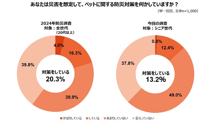 ◆「防災対策をしている」約13%、全世代調査と比較したシニアの対策実施率は低い水準