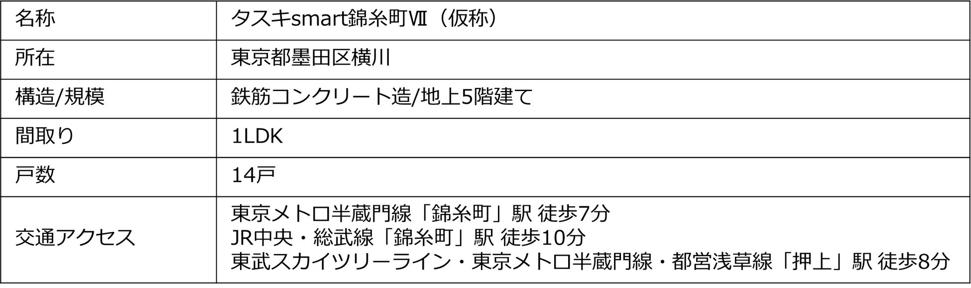 本プロジェクトは東京都墨田区、東京メトロ半蔵門線「錦糸町」駅から徒歩7分、東武スカイツリーライン他「押上」駅から徒歩8分に位置しております。東京を代表するランドマークである東京スカイツリーを中心に観光地としての魅力が楽しめるだけでなく、歴史と下町情緒あふれる文化が根付く人気のエリアにあり、資産性の高いプロジェクトとなっております。