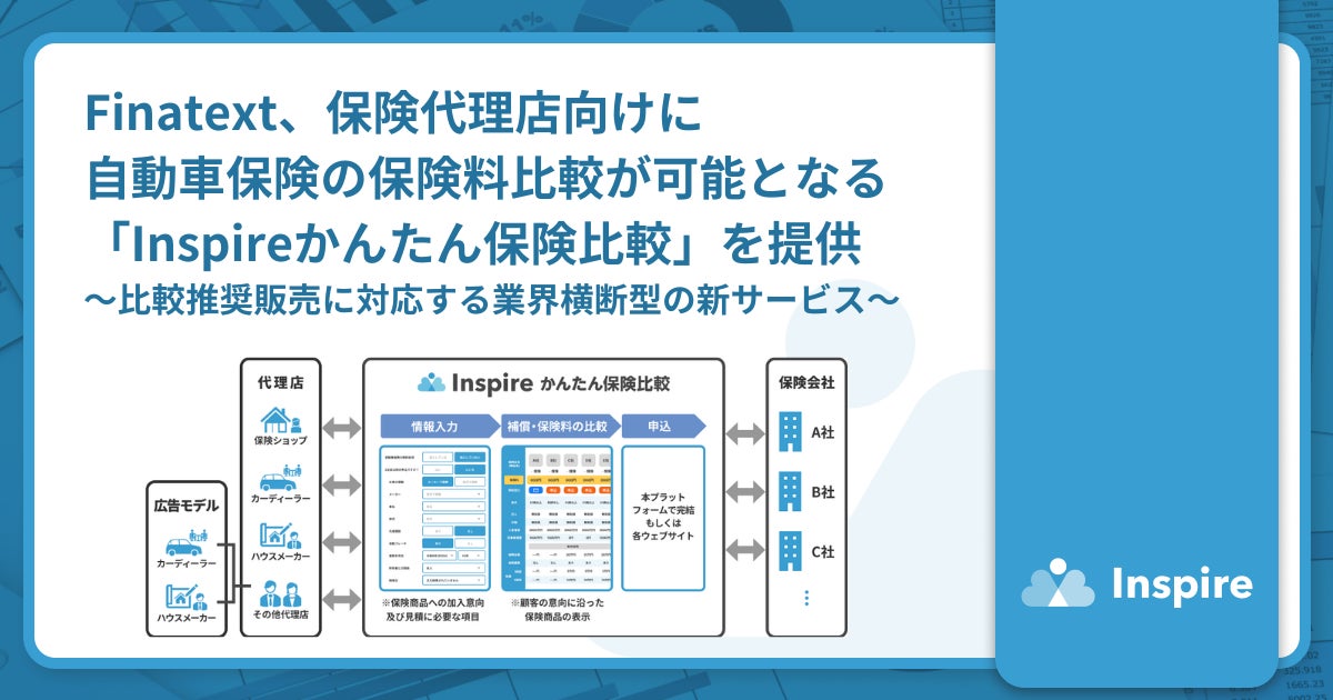 Finatext、保険代理店向けに自動車保険の保険料比較が可能となる「Inspireかんたん保険比較」を提供