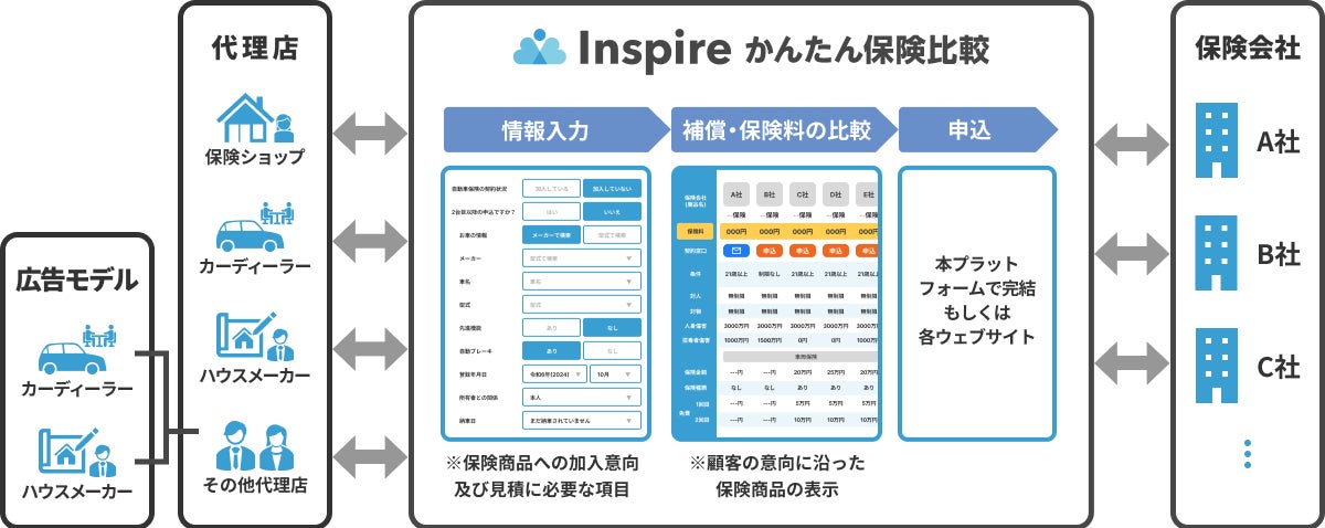 次世代金融インフラの提供を通して組込型金融を実現するFinatextグループの株式会社Finatext(本社:東京都千代田区、代表取締役CEO:木下 あかね、以下「Finatext」)は、保険代理店に向けて、各種保険の保険料を複数の保険会社間で比較し、顧客の意向に基づいた推奨が可能となる新サービス「Inspireかんたん保険比較」を提供します。本サービスは2025年度内の正式リリースを目指しており、まずは自動車保険から提供を開始し、順次火災保険への対応を予定しています。