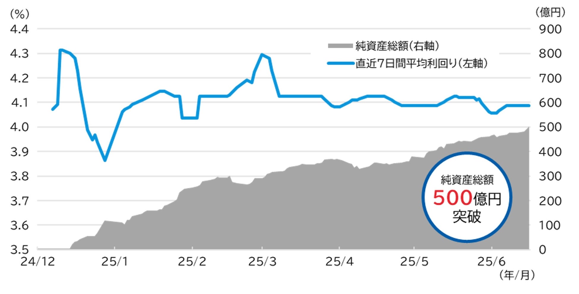 ■設定来の利回りと純資産総額の推移(2025年6月18日時点)