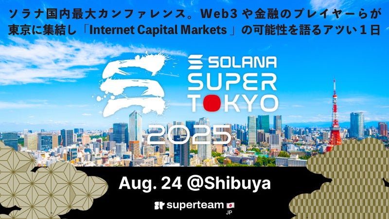 Web3専門メディア「あたらしい経済」を運営する株式会社幻冬舎(本社:東京都渋谷区、代表取締役社長:見城 徹)は、ブロックチェーン「Solana(ソラナ)」のSuperteam Japanと協力パートナーとして、カンファレンス「SuperTokyo 2025」を8月24日(日)に東京・渋谷で開催をすることを発表いたします。