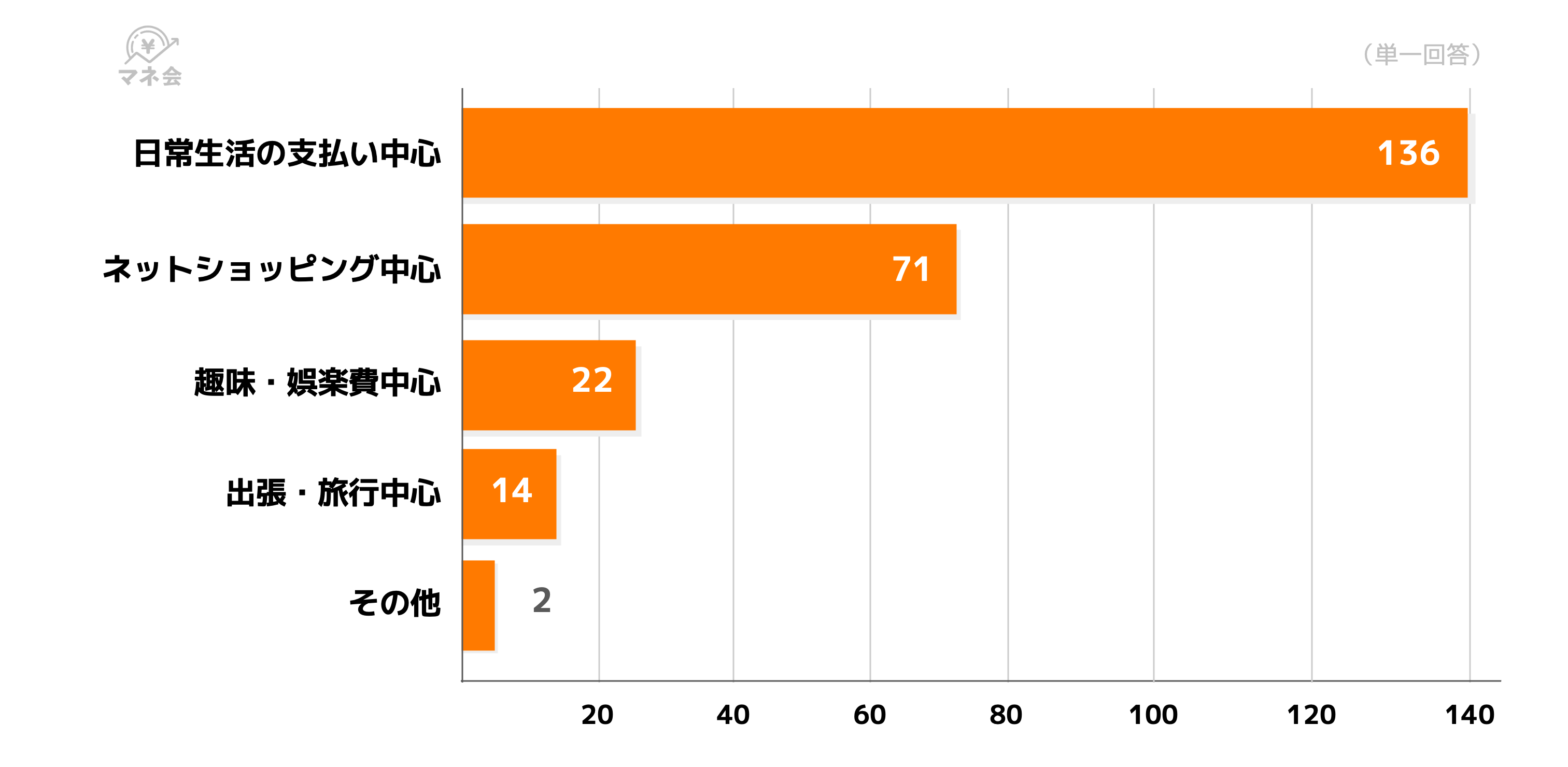 「日常生活の支払い」が半数以上を占めており、クレジットカードは生活に欠かせない決済手段になっていることが分かります。