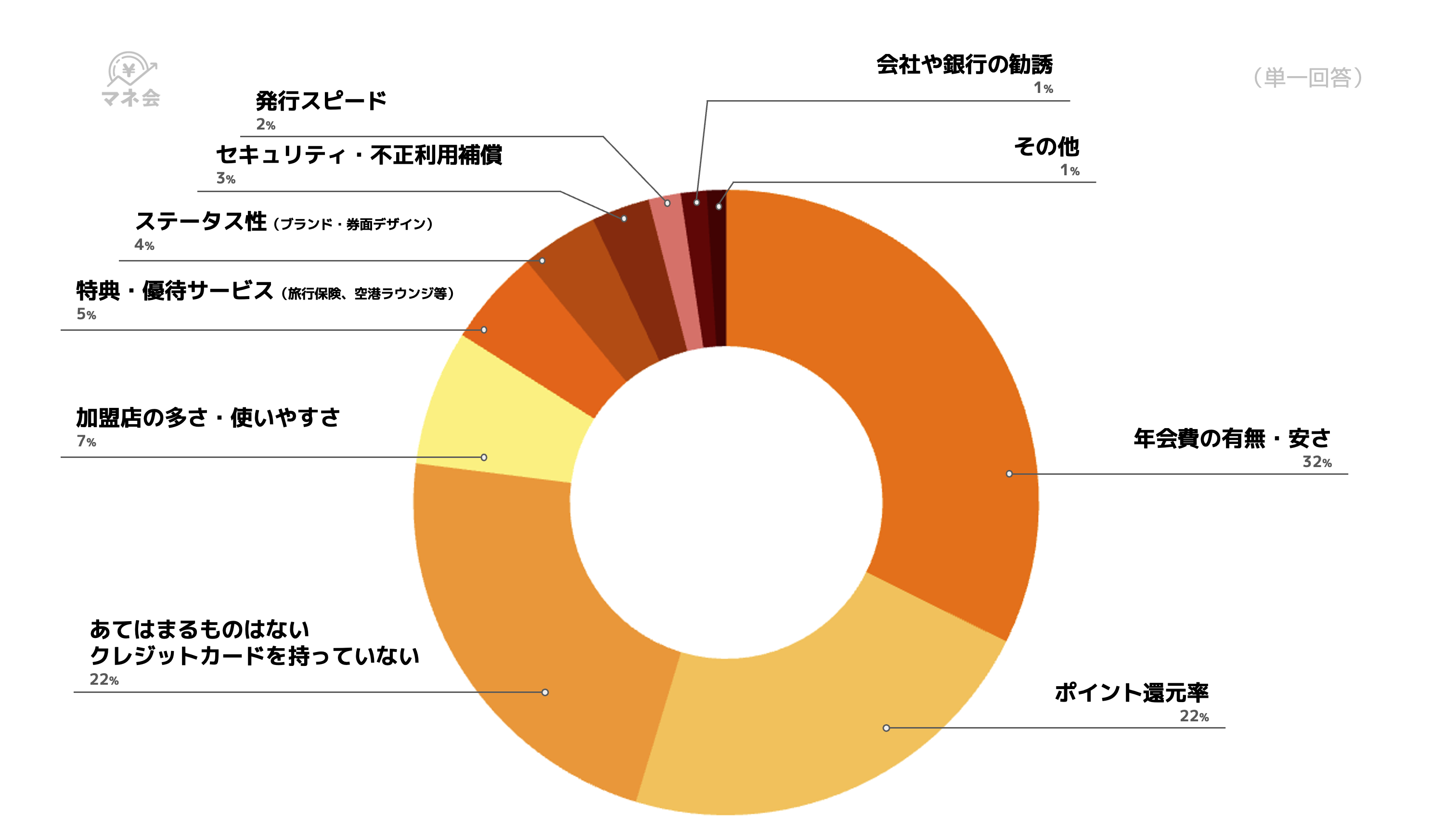 加盟店の多さや特典、ステータス性も一定の割合で選ばれており、カードに付随する付加価値も無視できない存在です。
