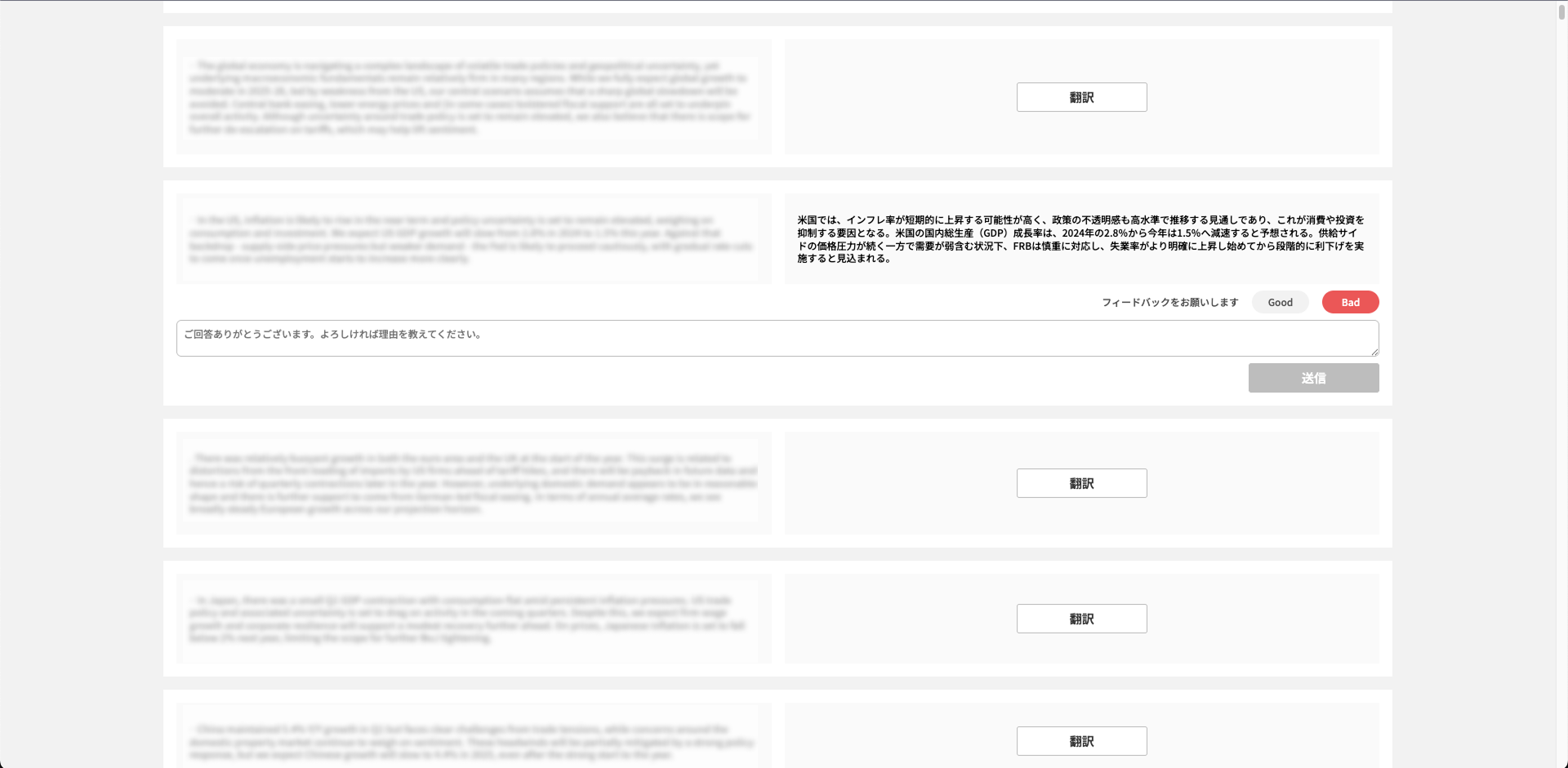 グローバルに連動する金融市場関連業務では世界各国の情報を収集すること、また日本の情報を世界に発信することが重要な仕事の一つになっています。マーケットレポート、ニュース、中央銀行のリリースなど日々作成される様々な金融市場関連文章を効率的に英訳・和訳することは従業員の業務効率化・情報発信力の強化という点で重要ですが、既存の翻訳ツールでは金融市場関連文章に特有な表現を上手く翻訳できないことが課題になっています。