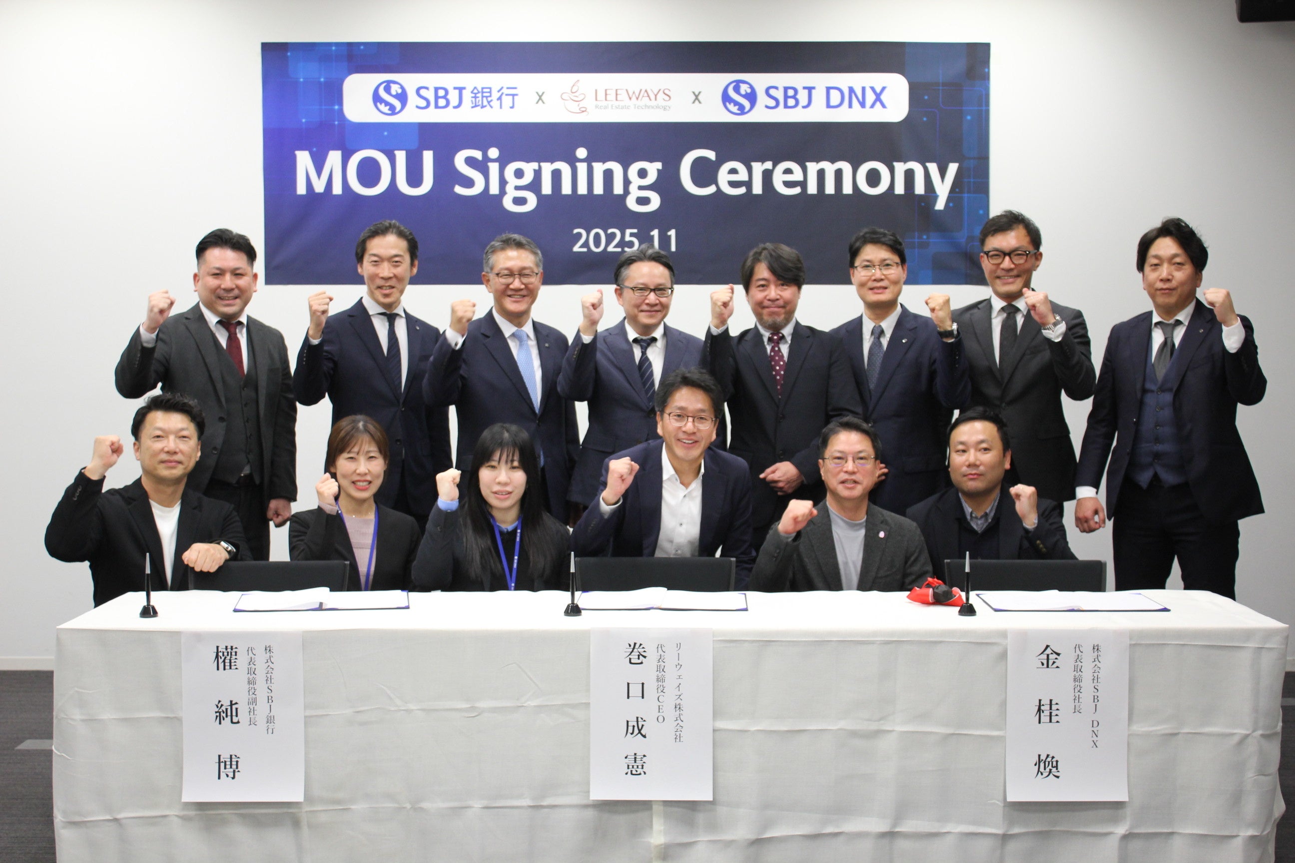 株式会社SBJ銀行(本店:東京都港区、代表取締役社長:並木 稔、以下、「当行」、当行グループを総称して「SBJ銀行グループ」)、株式会社SBJ DNX(本店:東京都港区、代表取締役社長:金 桂煥、以下「SBJ DNX」)と、リーウェイズ株式会社(本社:東京都渋谷区、代表取締役CEO 巻口 成憲、以下「リーウェイズ社」)は、下記の通り、業務提携に関する覚書を締結いたしましたので、お知らせいたします。