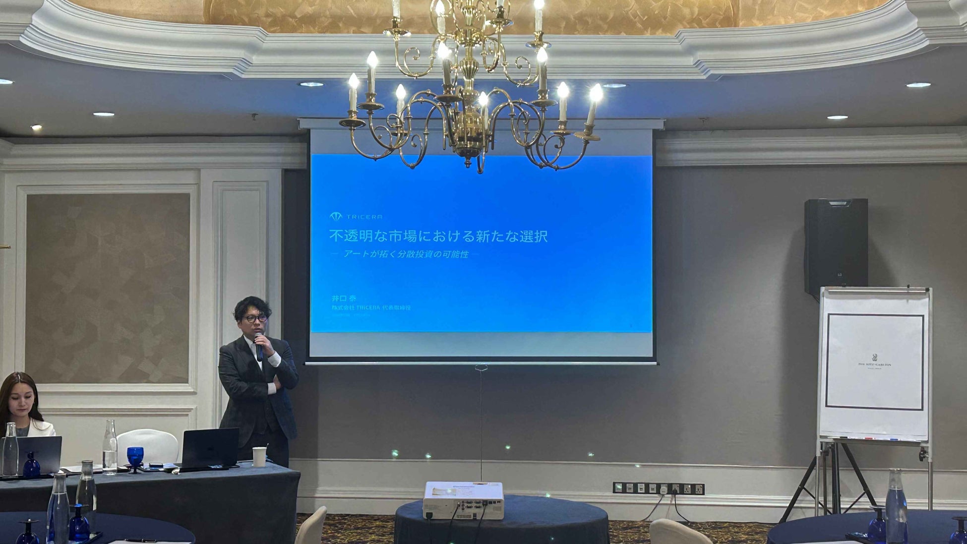2日目の勉強会はザ・リッツ・カールトンで開催されました。登壇は株式会社Art to Heritage(代表取締役:井口泰)で、その内容は現代アート投資の資産形成です。