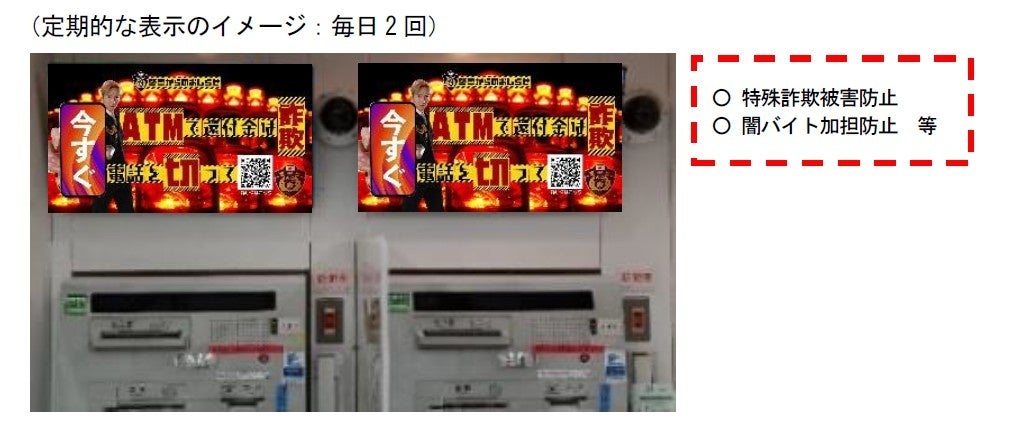 SocioFutureグループおよびゆうちょ銀行は、警察庁との連携により、全国のゆうちょ銀行ATMコーナーに設置しているサイネージにおいて、特殊詐欺被害防止のための啓発コンテンツを毎日2回表示します。