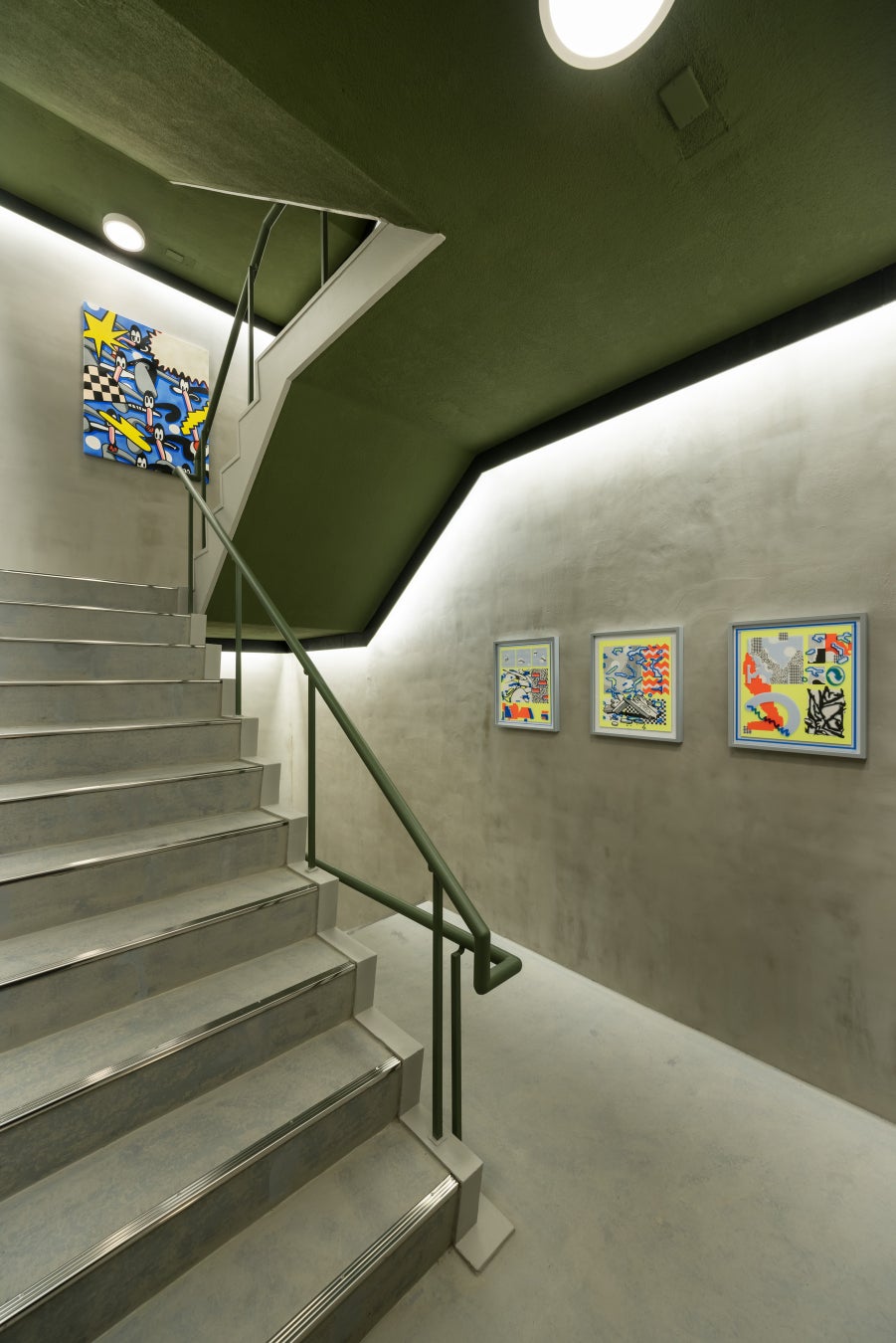 SHARE LOUNGE階段の踊り場には、CCCにて「アートがある生活提案」を行うCCCアートラボが選定するアーティストとして、Shinknownsukeの作品を展示しています。活力あふれる新宿の街に呼応するエネルギッシュなアートを通じて、お客さまの新たなアイデアやイマジネーションにつながるインスピレーションを提供いたします。