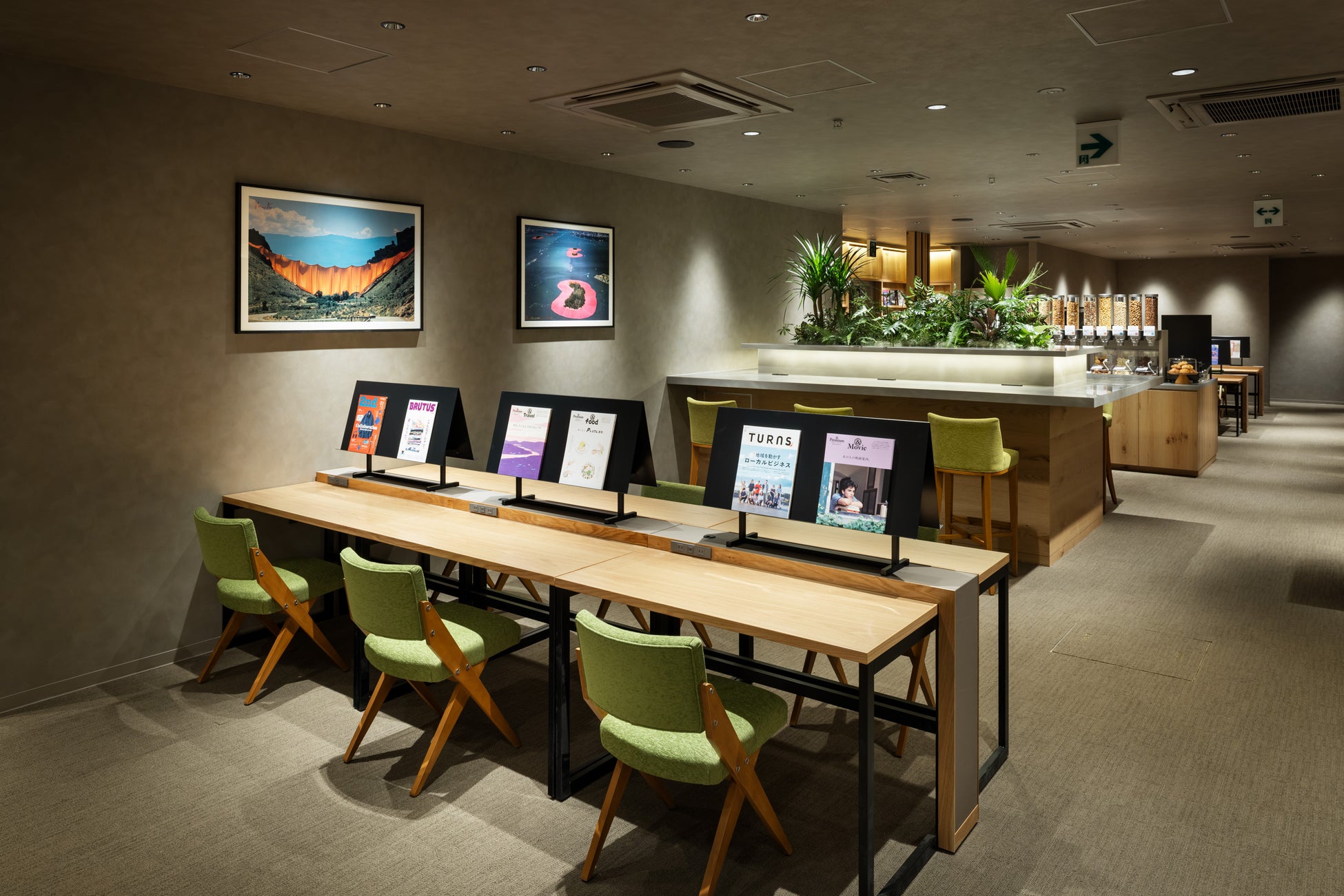 活気と多様性のある街・新宿のなかで、穏やかに心地よく過ごしていただけるよう、両フロアにフード・ドリンクカウンターをご用意しました。フロアを移動することなく、フリードリンク・フードをいつでもお楽しみいただけます。