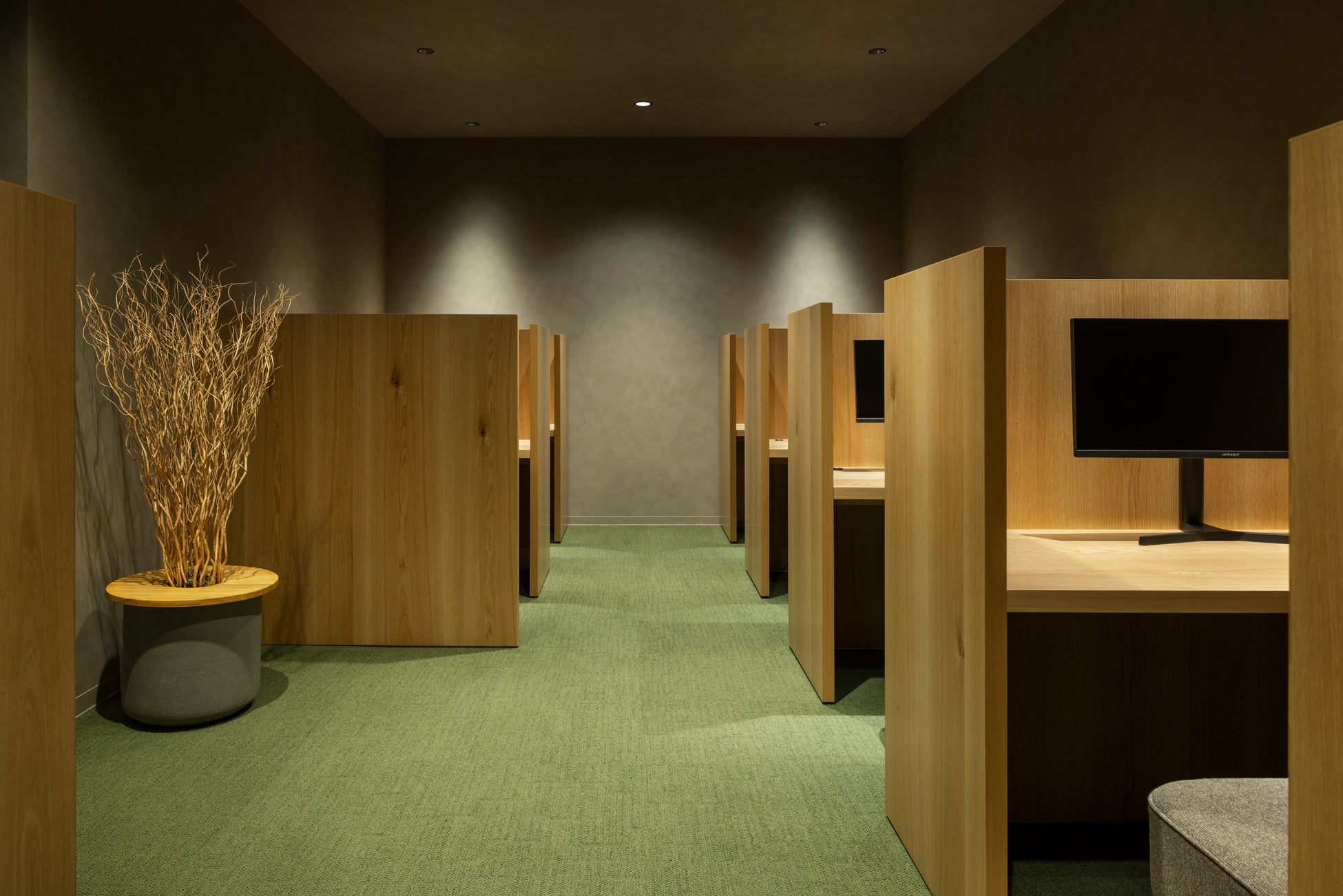 SHARE LOUNGE B1Fフロアには、Oliveを提示いただくことで優先的にご利用いただける「Olive会員優先席」もご用意しています。この優先席は、1名用個人ブースを中心に幅広の机や座り心地のよいソファ席を備えており、特別感を味わうことができる空間です。