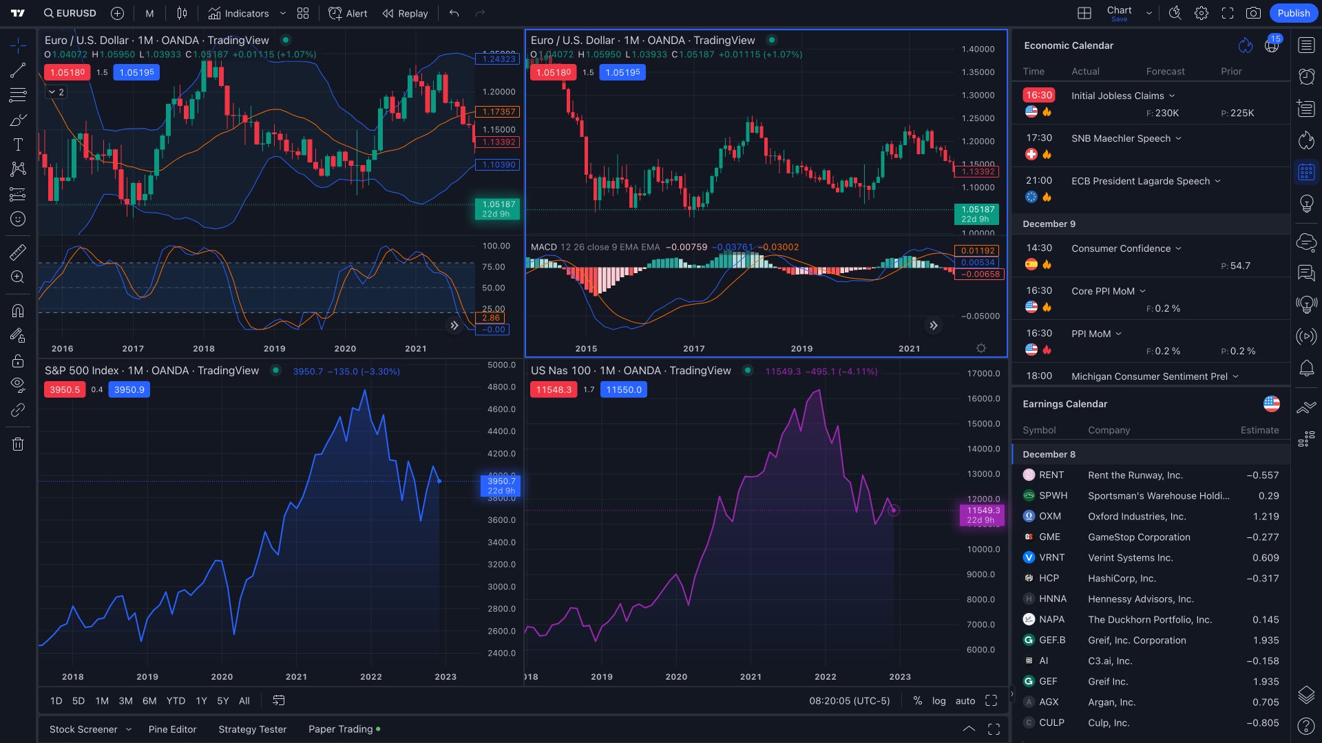 コミュニティと教育コンテンツの活用: TradingViewのソーシャルネットワークを通じて、世界中のトレーダーとアイデアを共有したり、コミュニティの戦略やポートフォリオを参考にすることができます。