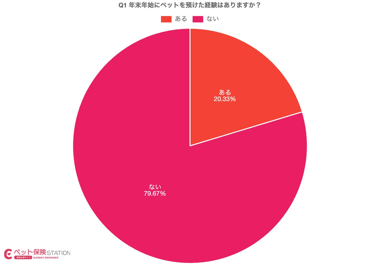 年末年始にペットを預けた経験がある人は全体の約20.3%、ない人は約79.7%と「預けていない層」が多数