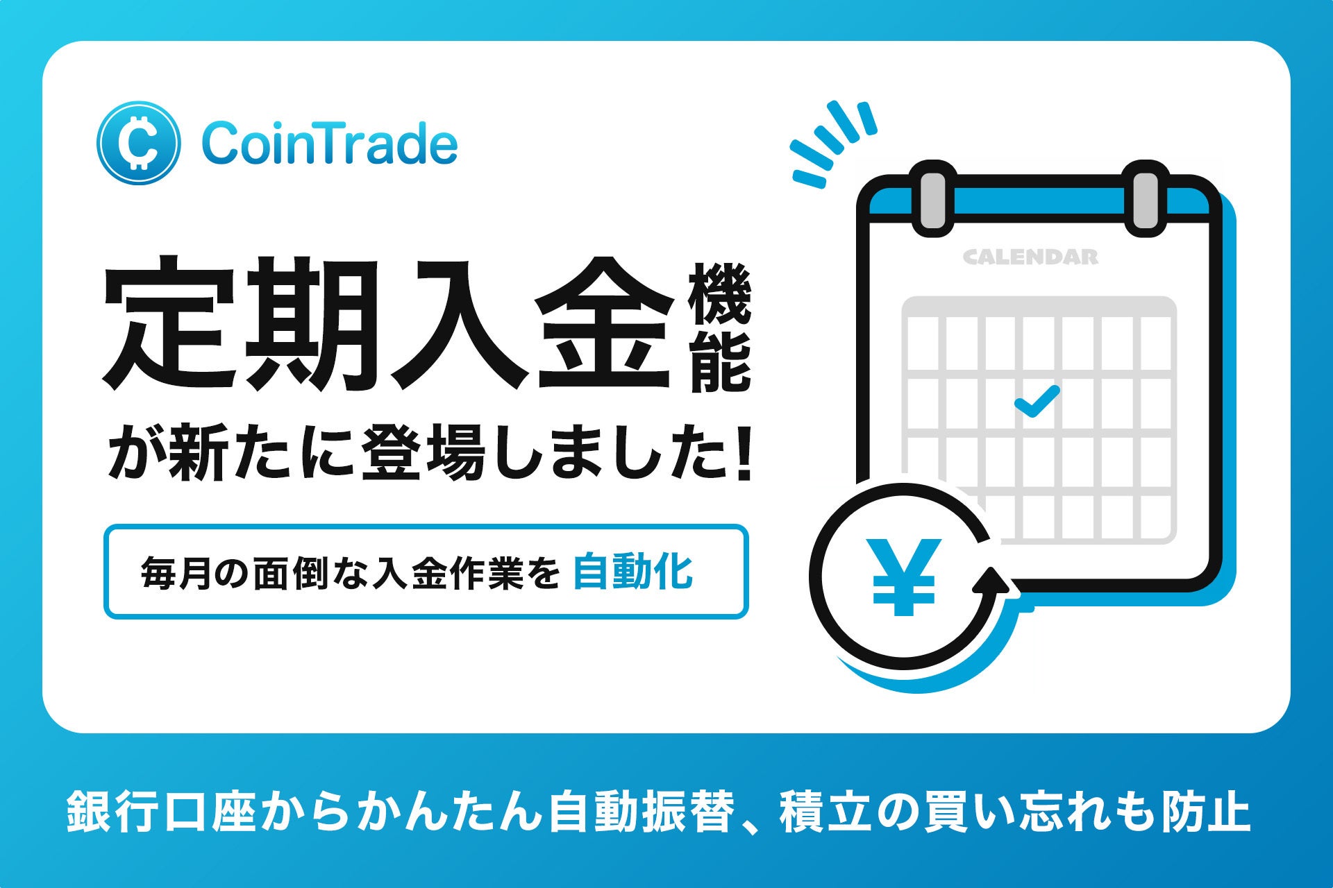 「CoinTrade(コイントレード)」においてサービス提供を行う定期入金については、現在「CoinTrade(コイントレード)」及び「CoinTrade Stake(コイントレードステーク)」で提供している※積立サービスをよりシームレスに、より便利に利用可能となるサービスとなります。