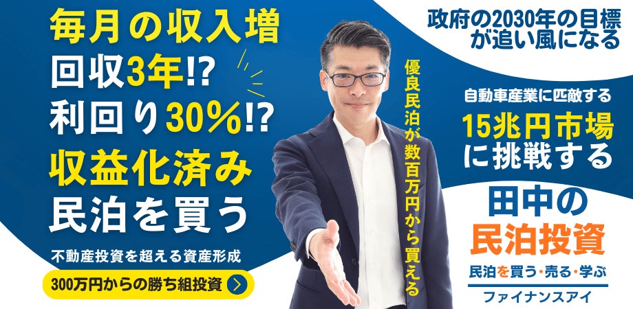 民泊ビジネスなら収益化済み・自動化済みの民泊を買う再現性の高い民泊投資を伝える『田中の民泊投資』。毎月プラスの不労所得を増やす正しい民泊事業を初心者にも分かりやすく伝えます。