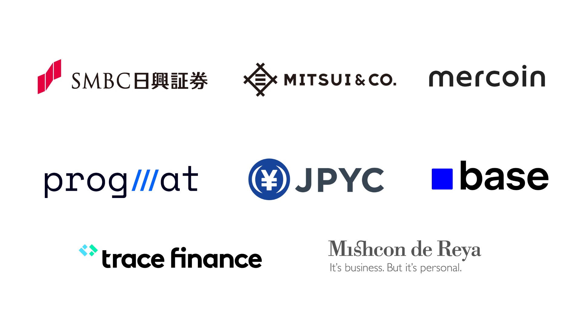 SMBC日興証券/三井物産/メルコイン/JPYC/Progmat/Base/Trace Finance/Mishcon de Reya