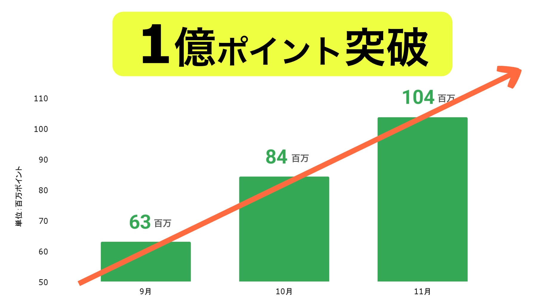 OsidOriアプリご利用ユーザー限定プレリリースにて実施した中、お客様に付与した総付与ポイント数は、スタートからわずか3ヶ月で1億ポイントを突破しました。