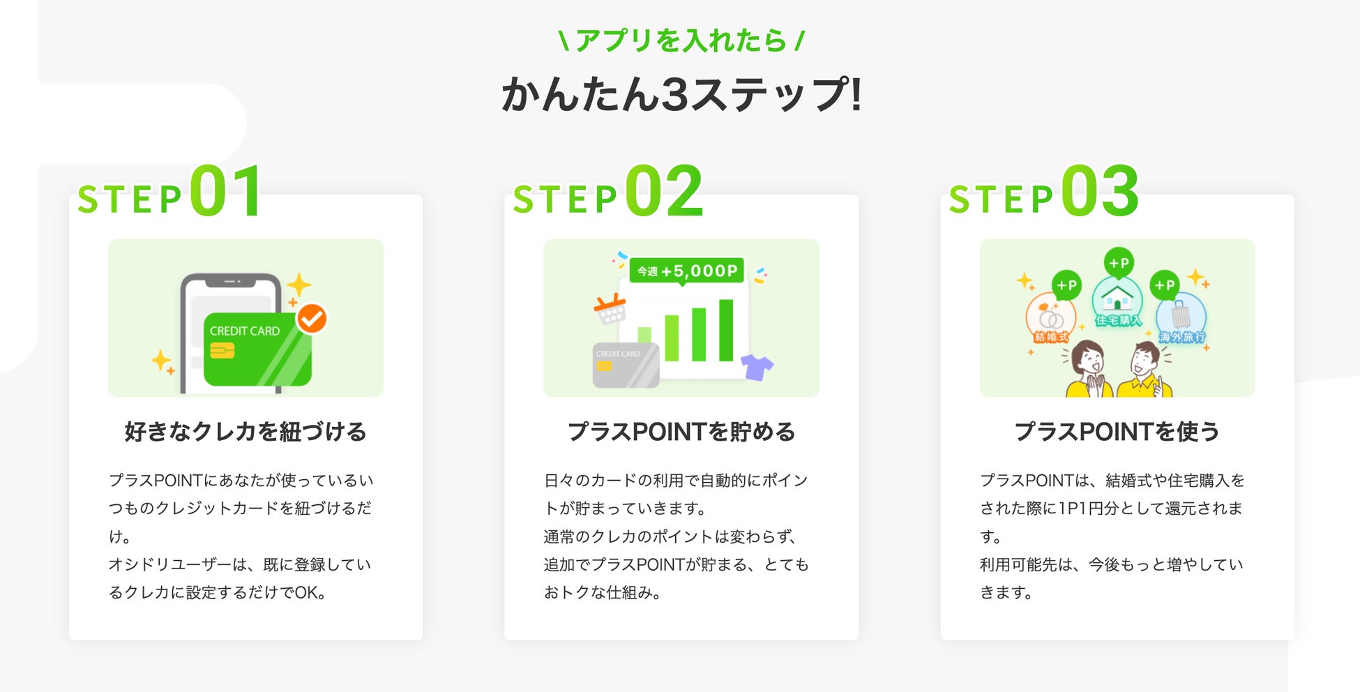 プラスPOINTアプリをDLした後は、クレカを紐づけるだけでOK。