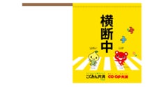 コープ共済連会員生協(128生協)では、当会の「お車の補償」である「マイカー共済」を取り扱っており、組合員の安心なカーライフのためのお役立ちを行っております。また、コープ共済連会員生協組合員の「マイカー共済」見積もり1件につき、公式キャラクターがコラボした「ピットくん・コーすけコラボ横断旗」を寄贈しています。