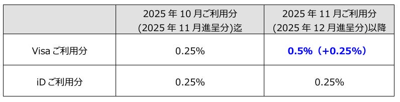 2025年11月に、「VポイントPay」ではVisaでのご利用分に対する還元率の引き上げ(0.25%から0.5%)や、クレジットカード・デビットカードからのチャージ手数料を無料にする等の商品性改正を行い、サービスの利便性向上に努めています。