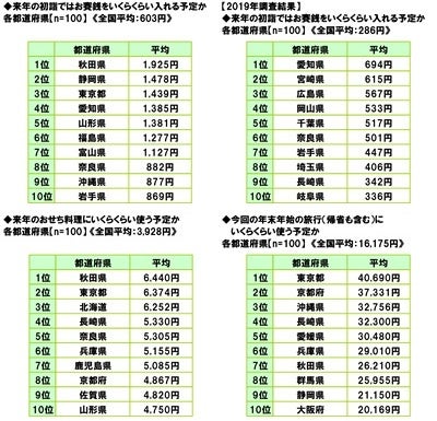 ・「秋田県」“今年のクリスマス予算”、“来年のお賽銭予算”、“来年のおせち料理予算”で1位