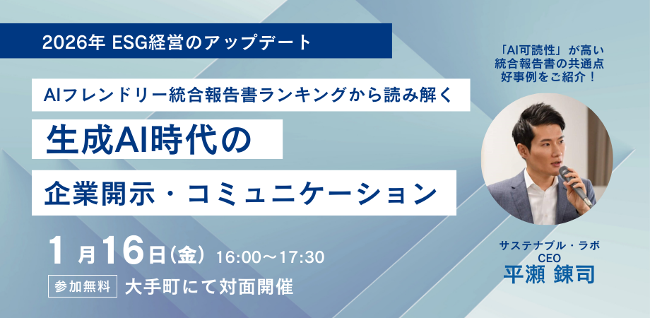 本ランキングを題材に、ぜ今「AI可読性」が重要なのか、機械に“読まれやすい”統合報告書にはどのような共通点があるのか、実務にすぐ活かせる設計上のポイントや好事例をご紹介するイベントを東京・大手町にて開催いたします。申し込みページは追って当社peatixページに公開いたします。