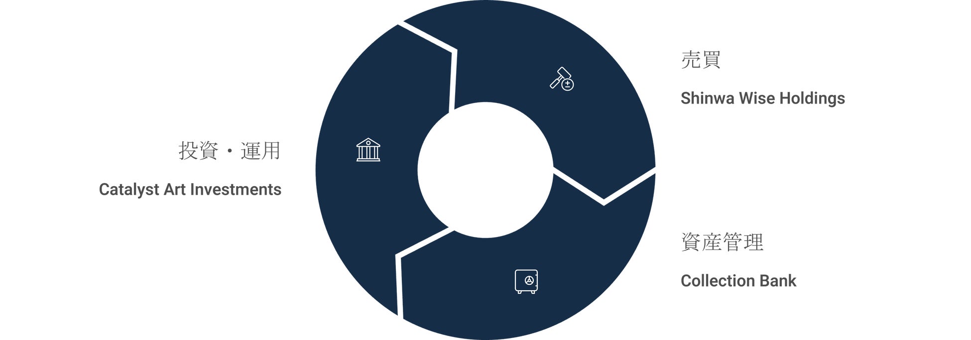 バブル期を中心に日本に集まったアート作品の多くは未だ国内に眠っている状況であり、今後高齢化による相続の増加や終活により、眠っていたアート作品が市場に出てくると考えられています。故に、日本のアートマーケットは大きな可能性を秘めており、これら3社の連携により、これまで日本のアート業界には存在しなかった投資・運用(CAI)、売買(SWH)、資産管理(CB)によるアート金融エコシステムを作り上げ、日本のアートマーケットの活性化、さらにはアート資産の価値向上に寄与致します。