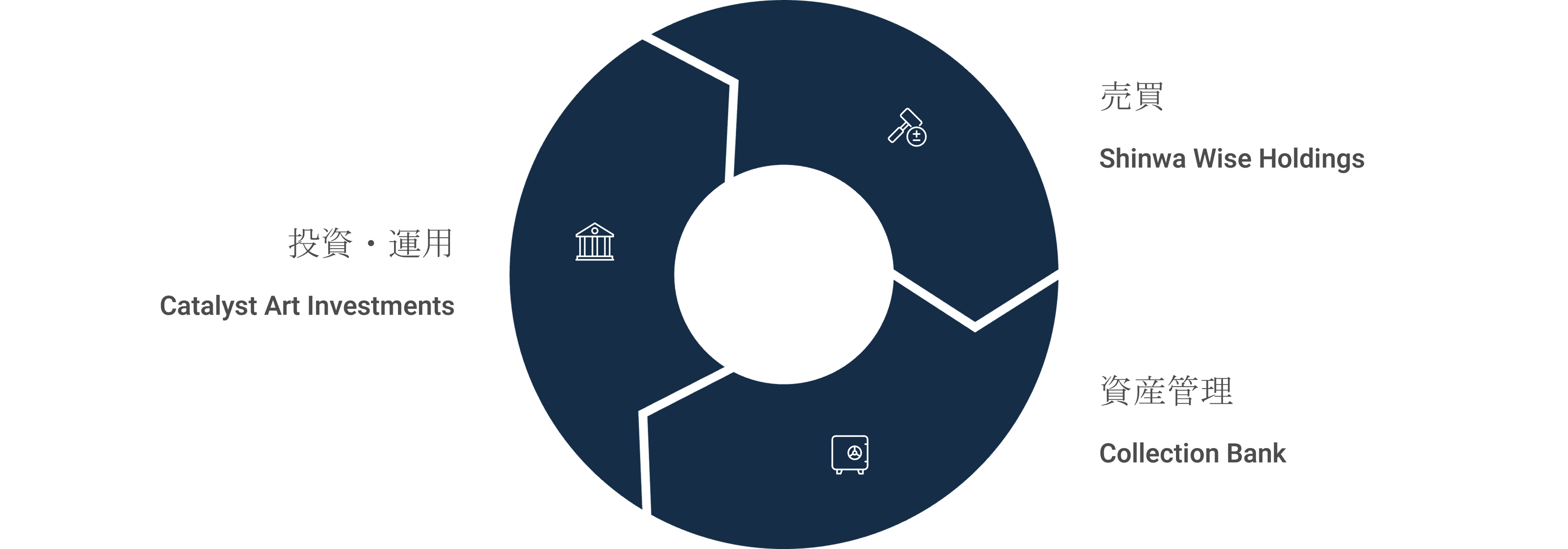 バブル期を中心に日本に集まったアート作品の多くは未だ国内に眠っている状況であり、今後高齢化による相続の増加や終活により、眠っていたアート作品が市場に出てくると考えられています。故に、日本のアートマーケットは大きな可能性を秘めており、これら3社の連携により、これまで日本のアート業界には存在しなかった投資・運用(CAI)、売買(SWH)、資産管理(CB)によるアート金融エコシステムを作り上げ、日本のアートマーケットの活性化、さらにはアート資産の価値向上に寄与致します。