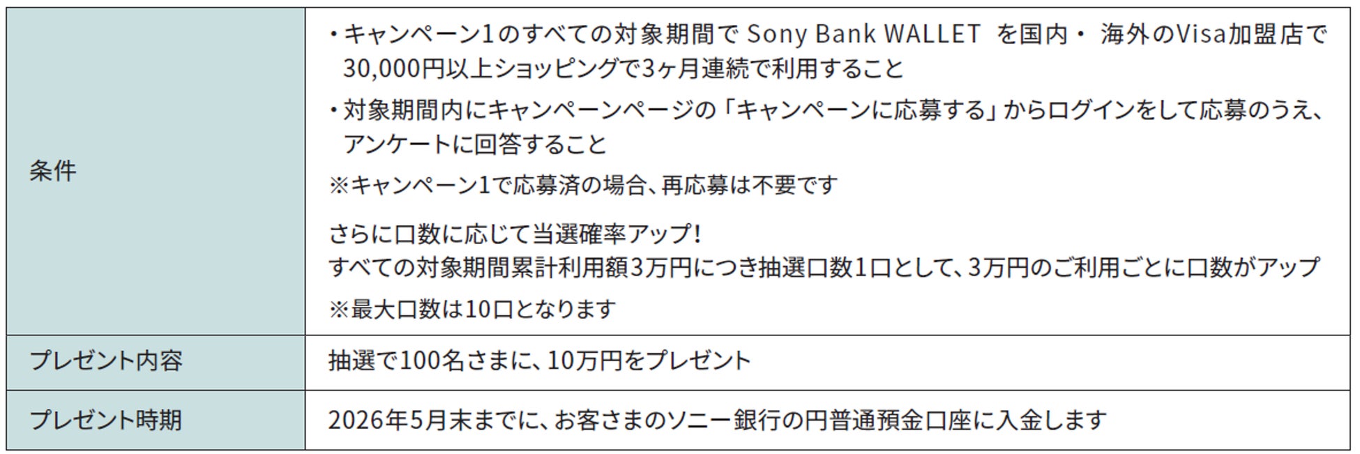 みなさまのご愛顧に感謝して、2026年1月5日(月)より「Sony Bank WALLET 10周年記念キャンペーン」を実施しますので、お知らせします。
