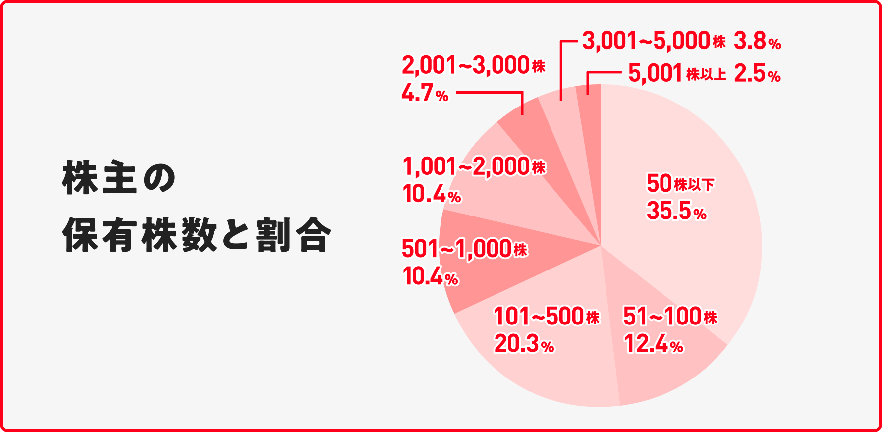保有株数の分布は、50株以下を保有する株主が35.5%となり、初期利用者のようなライトユーザー層が幅広く参加していることが分かります。また、3,001株以上を保有する株主は合計で6.3%となり、第1期の3.7%から上昇しています。サービスの継続利用によって、比較的多くの株式を保有する株主が増加していることが読み取れます。