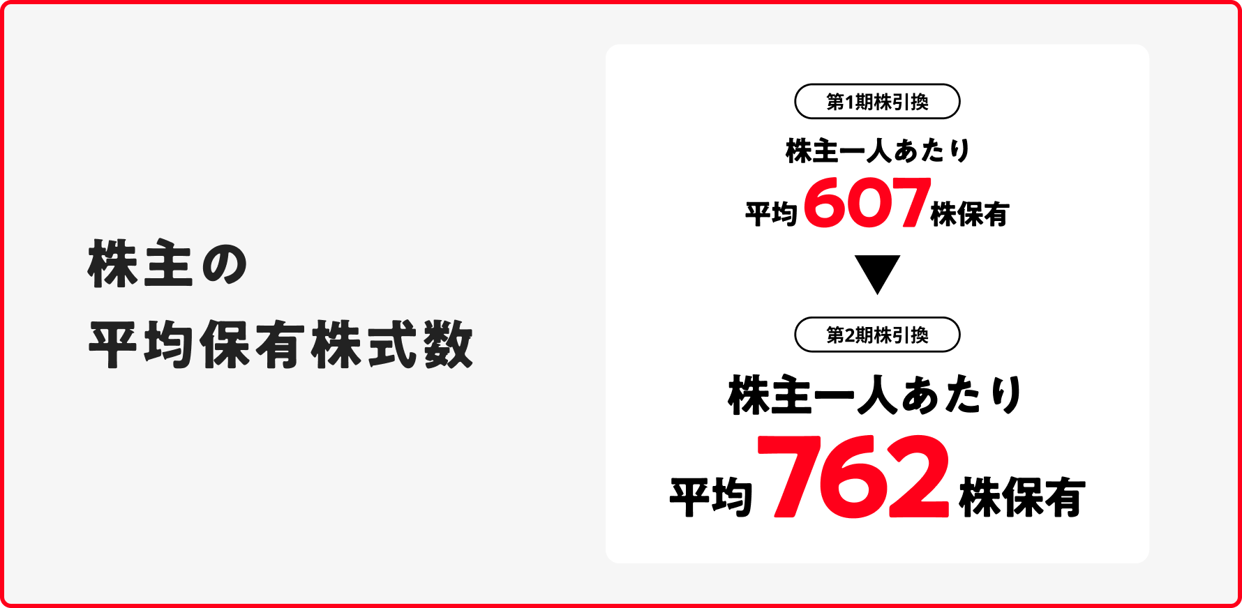カブアンドでは、株主数の拡大に加え、株主一人ひとりのエンゲージメントの向上を重視しています。 第1期における株主あたりの平均保有株式数は607株でしたが、第2期では762株となり、平均保有株式数が増加しました。単に株主数が増えただけでなく、サービス利用および株引換への参加を継続するユーザーが増え、株主一人ひとりの関与が着実に深まっていることを示しています。