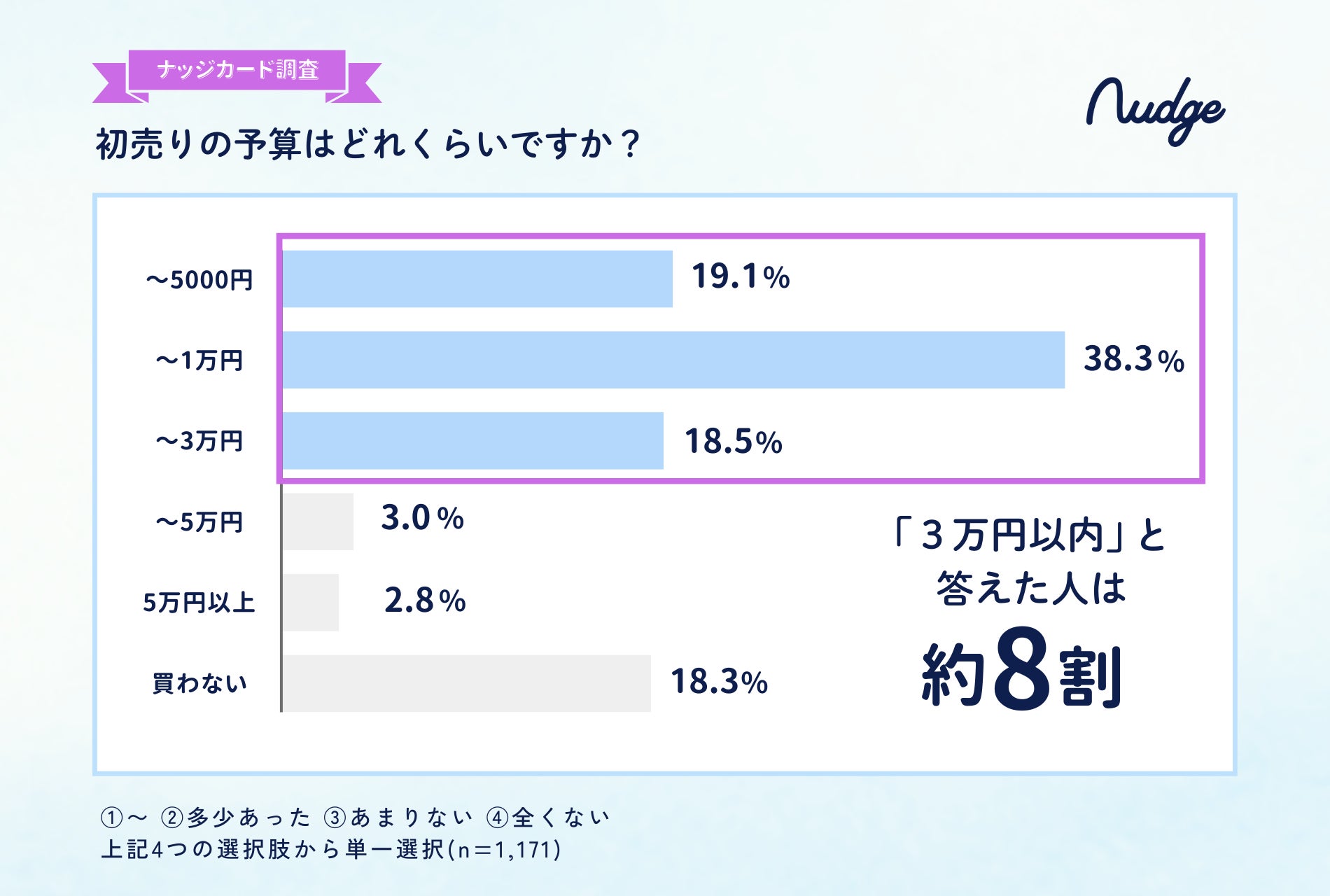 初売りの予算は「1万円以内」が最多で、「3万円以内」が全体の約4分の3を占めました。