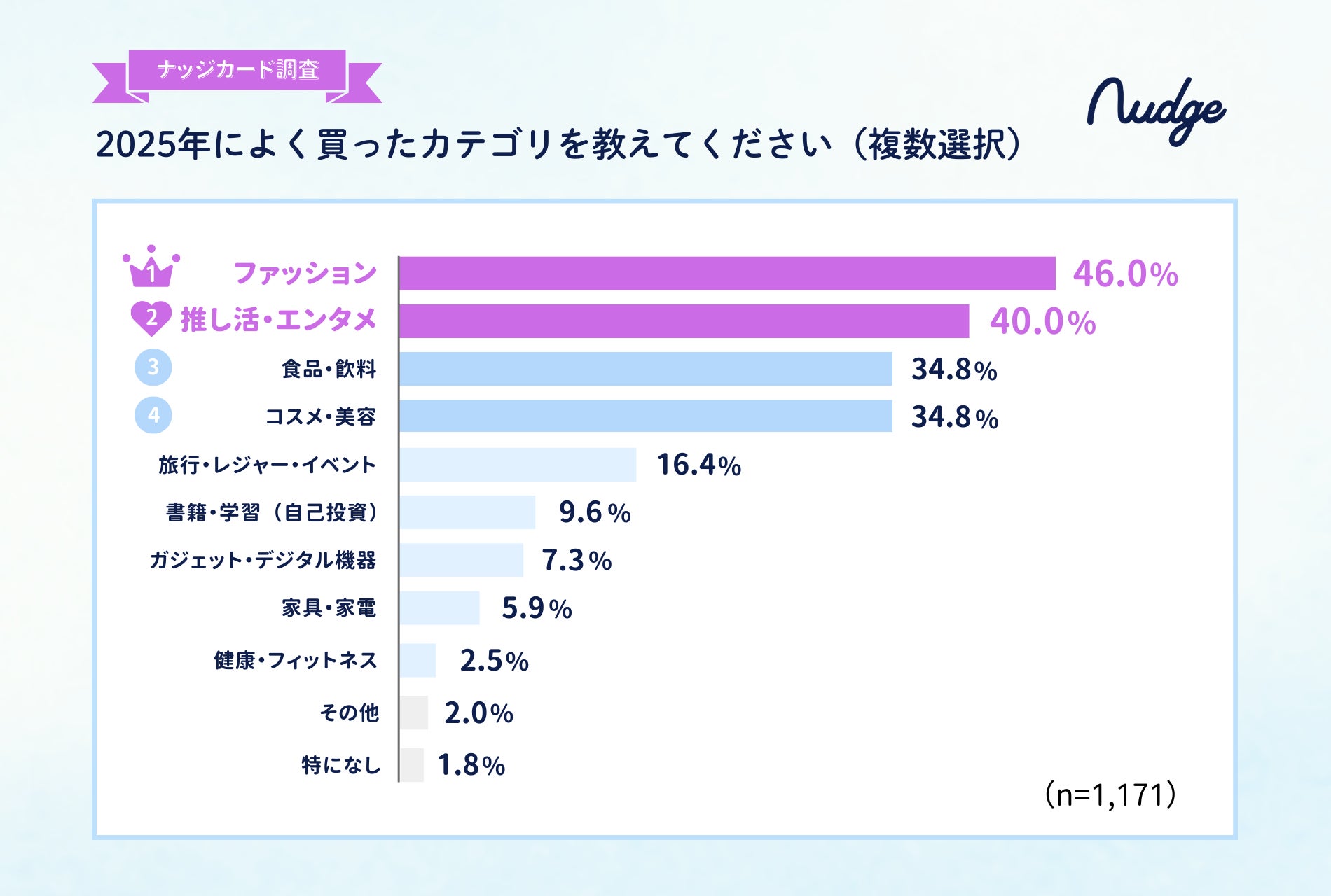 2025年に購入機会が多かったのは「ファッション」「推し活・エンタメ」