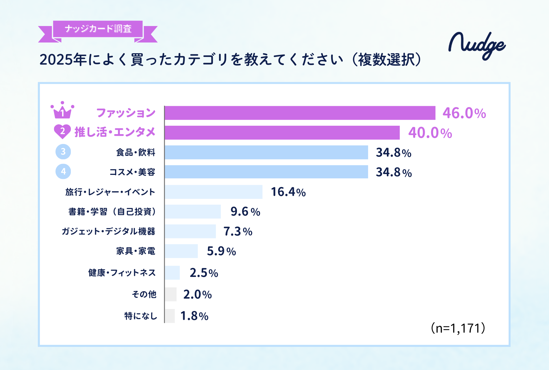 2025年に購入機会が多かったのは「ファッション」「推し活・エンタメ」
