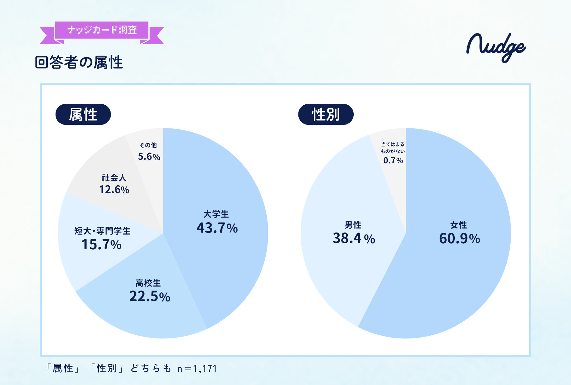 ナッジ株式会社(本社:東京都千代田区、代表取締役:沖田 貴史)は、次世代クレジットカード「Nudge(ナッジ、以下「ナッジカード」)の「学生部」カードユーザー1,171名を対象に、「2025年の買い物実態および2026年初売りに関するアンケート調査」を実施しました。