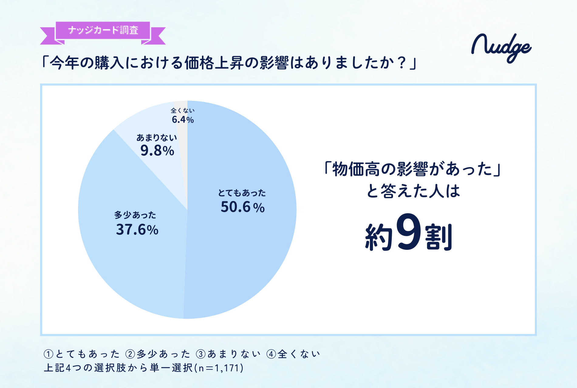 2025年の買い物については、約9割が物価高の影響を感じていると回答しました。