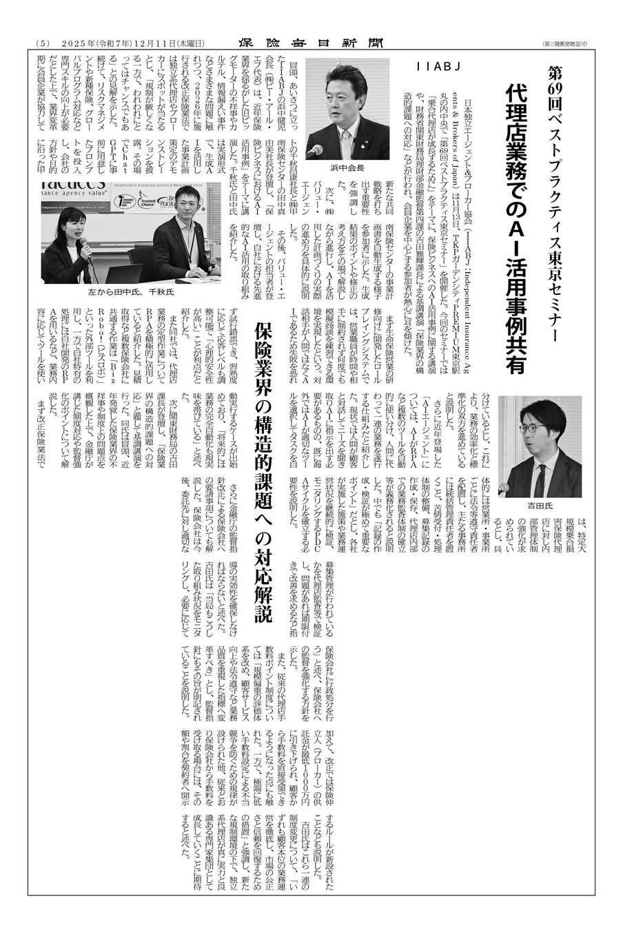 その内容が 保険毎日新聞 2025年12月11日付 において紹介されました。