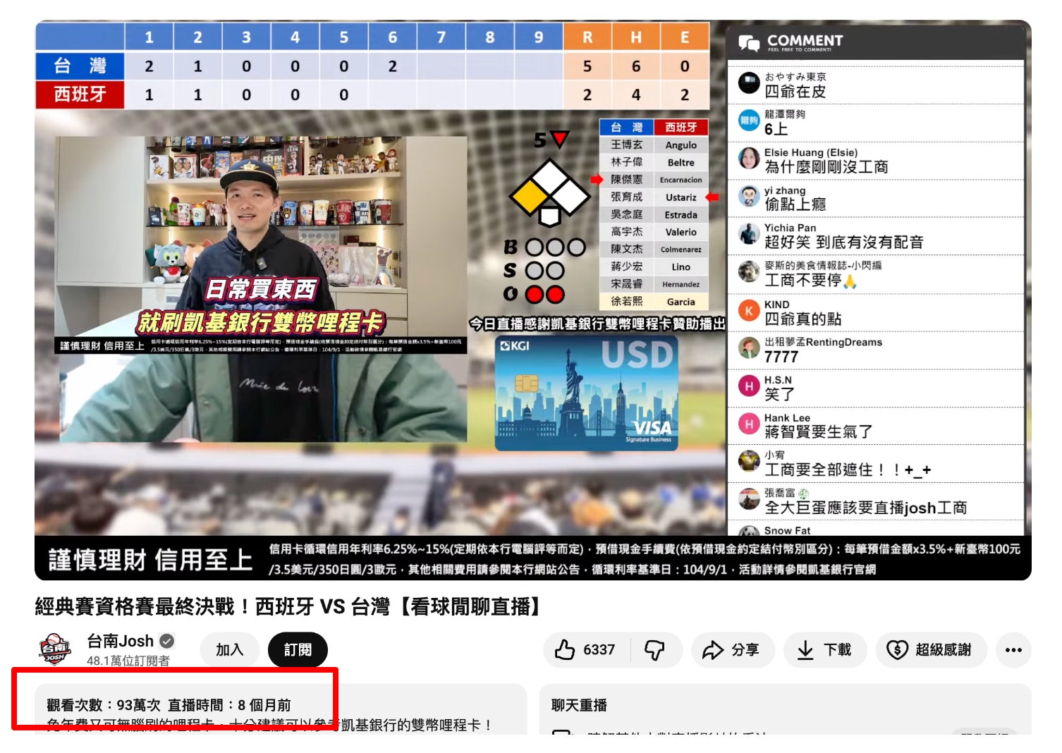 ・企画: WBC予選 台湾対スペイン戦 YouTubeライブ配信コラボレーション