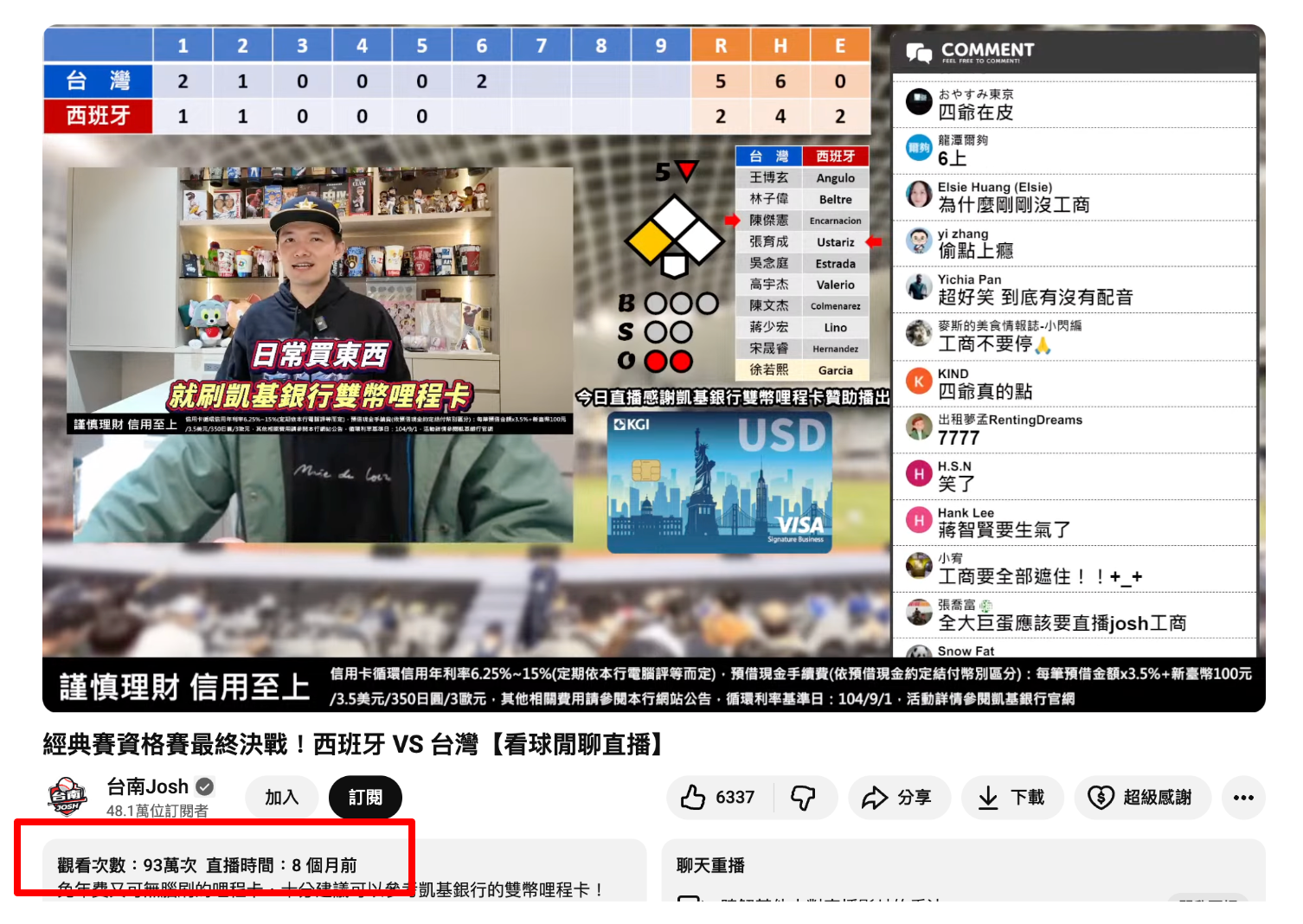 ・企画: WBC予選 台湾対スペイン戦 YouTubeライブ配信コラボレーション