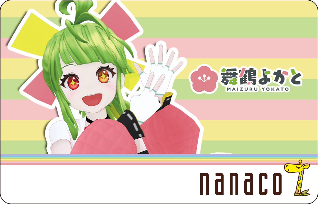 舞鶴よかとは、福岡県福岡市中央区舞鶴生まれの「バーチャル博多っ子YouTuber」で、地元の福岡を盛り上げるべく活動しているご当地VTuber です。YouTube チャンネルでは、福岡の食べ物やイベントの紹介、ゲーム配信など、幅広いコンテンツを発信しています。今回、舞鶴よかとがnanaco 券面デザインに登場。「ナナコネクト」を通じてお客さまから応援いただいたnanaco ポイントは、舞鶴よかとのファンとの交流を広げる活動に役立てられます。
