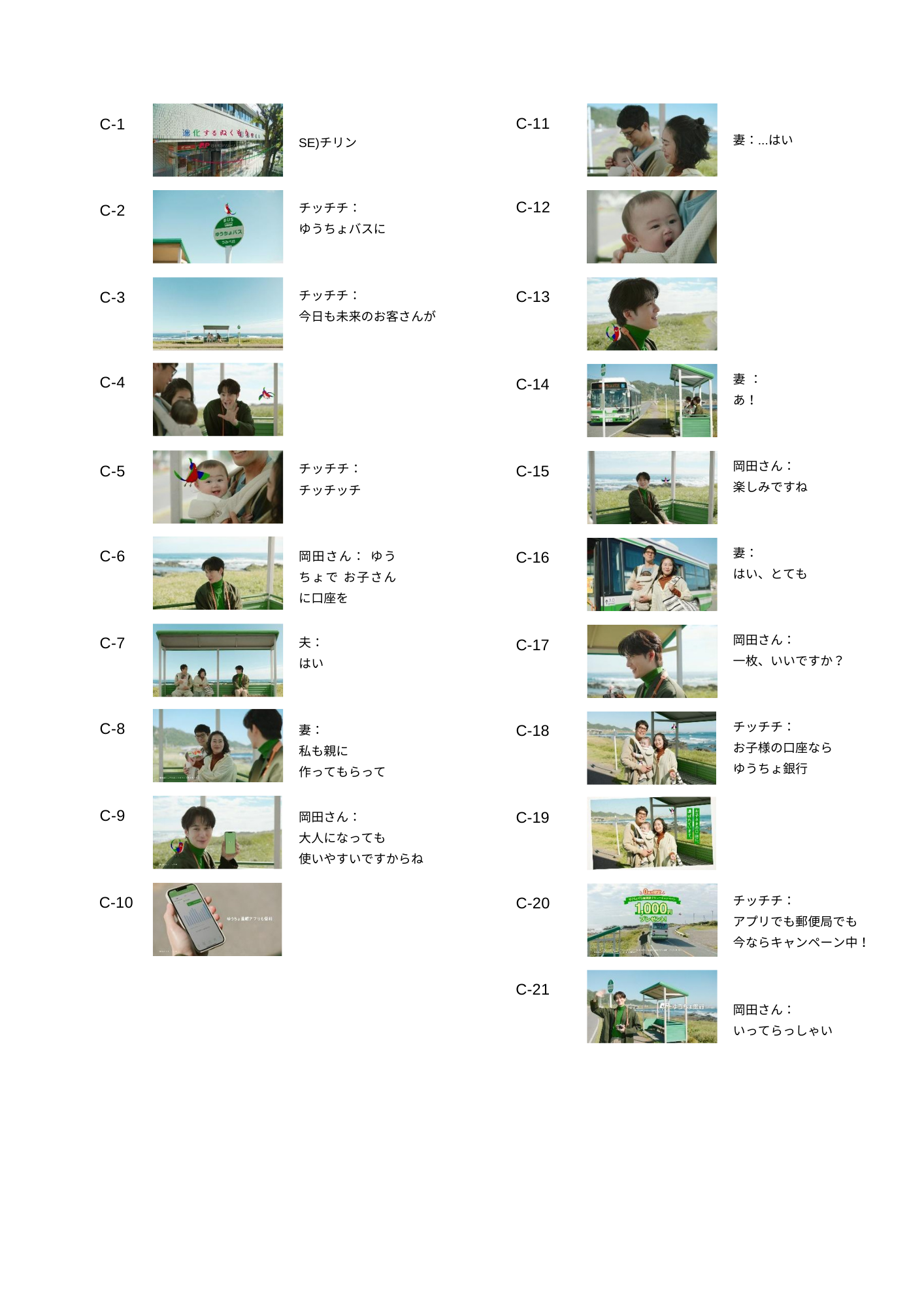 「3色の鳥・ゆうちょバス お子様口座」篇では、親と同じ銀行で口座を作ることの便利さに加え、将来お子様の生活拠点が日本全国どこに移ろうと、郵便局・ゆうちょ銀行ならどこにでもあるという安心感、すなわち「お子様名義の口座開設ならゆうちょ銀行」というメッセージを、ゆうちょ銀行へお子様用の口座を作りに訪れる夫婦と、岡田さんのやり取りにより表現しています。30秒バージョンでは、赤ちゃんと岡田さんのキュートなやり取りが加わり、温かい雰囲気をよりいっそう楽しめる構成になっています。