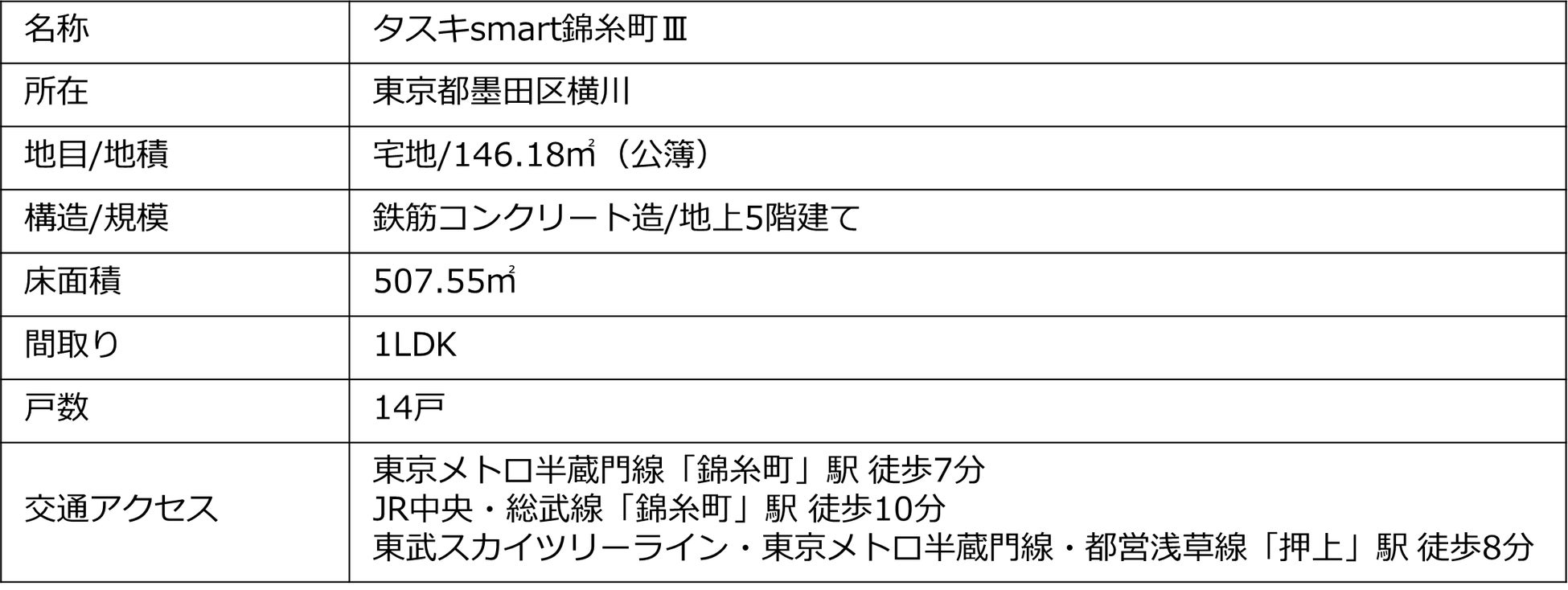 本プロジェクトは東京都墨田区、東京メトロ半蔵門線「錦糸町」駅から徒歩7分、JR中央・総武線「錦糸町」駅から徒歩10分、東武スカイツリーライン・東京メトロ半蔵門線・都営浅草線「押上」駅から徒歩8分に位置しております。4路線2駅が利用可能であることで主要各駅までの交通利便性に優れるプロジェクトとなっております。