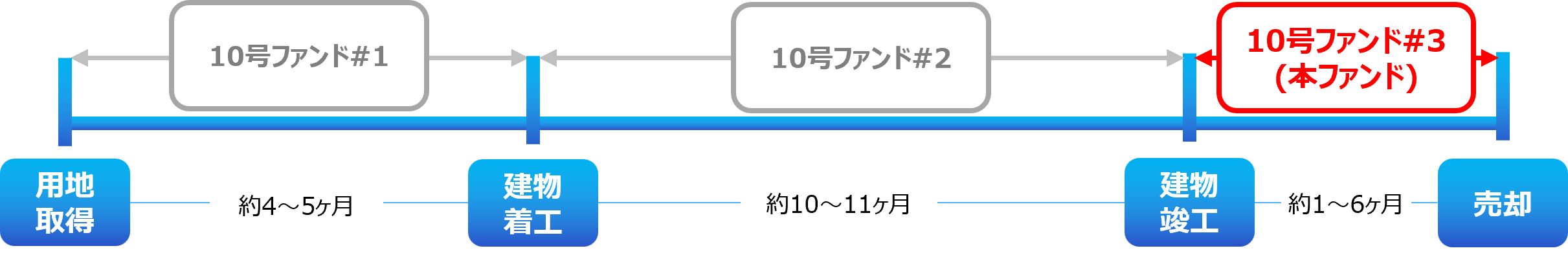 本ファンドは、用地の取得から建築確認済証の取得・着工までを運用期間とした「タスキ キャピタル重視型 第10号ファンド#1」および着工から竣工までを運用期間としている「タスキ キャピタル重視型 第10号ファンド#2」に続くフェーズとして、竣工から売却までを運用期間とする「タスキ キャピタル重視型 第10号ファンド#3」を組成するものです。同一物件に対し、プロジェクトの進行度合いによる事業リスクの程度に応じて段階的にクラウドファンディングを組成し、投資家のみなさまの新たな投資機会の創出と、資金流動性の向上を図ります。