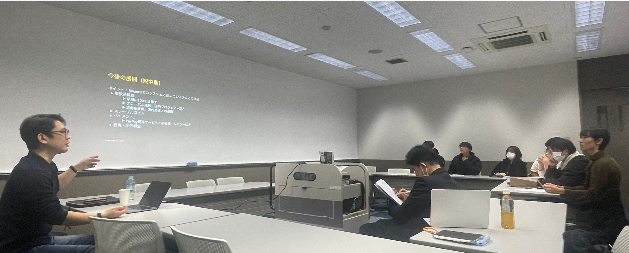 世界最大規模(*1)のブロックチェーン・エコシステムおよび暗号資産インフラを提供する Binanceの日本法人であるBinance Japan株式会社(以下「Binance Japan」)は、ブロックチェーンおよびWeb3教育コンテンツを無料で学べるグローバルプラットフォーム「Binance Academy」のWeb3出張授業として、2025年12月23日(火)に兵庫県神戸市内の流通科学大学にて特別講義を行いました。本授業は、同大学 経済学部 経済情報学科・吉川満准教授の投資を学ぶゼミ活動の一環として行われ、技術観点や投資観点にとどまらず、Web3を金融・経済・データの観点から多角的に捉え、実社会で進行している制度面や市場環境の変化を俯瞰しながら解説することで、実務と理論の双方に触れるセッションとなりました。