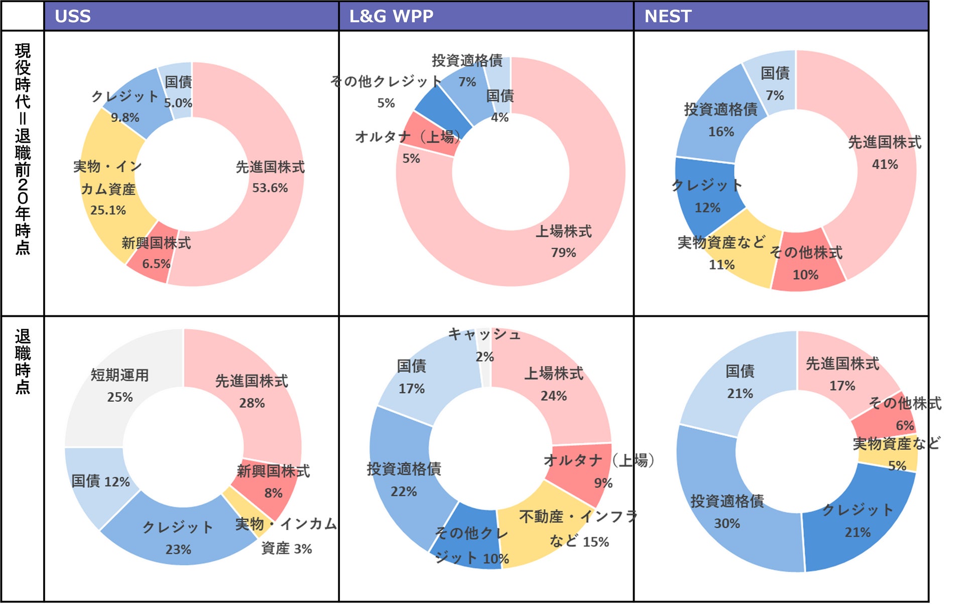 <各DC年金デフォルト運用の資産配分状況>