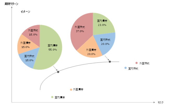 政策アセットミックスの候補策定にあたっては、効率的フロンティアの活用が有効です。期待収益率の設定に際しては、キャッシュフローベースの成熟度が参考になります